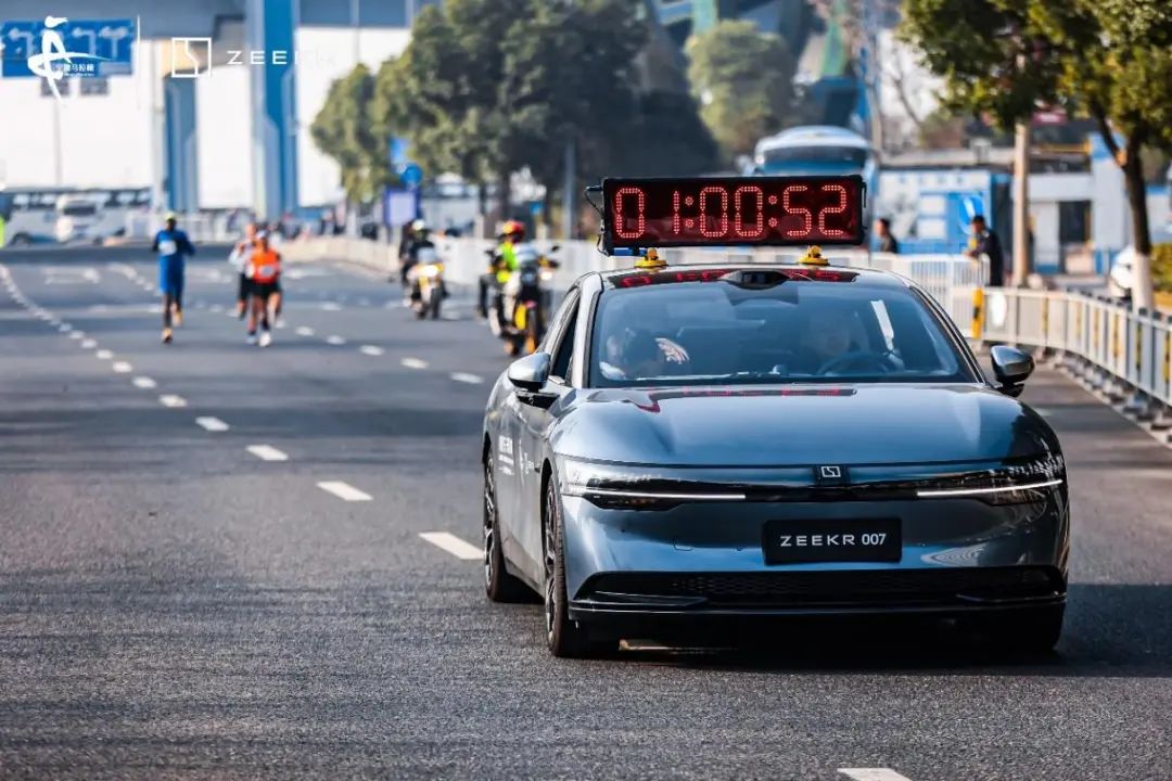 豪华猎装轿跑极氪001则一路为选手们保驾护航。作为全球交付最快突破10万台、30万元以上纯电车型销量冠军,极氪001以极致安全、极致高效陪伴跑友们奔赴赛程终点。