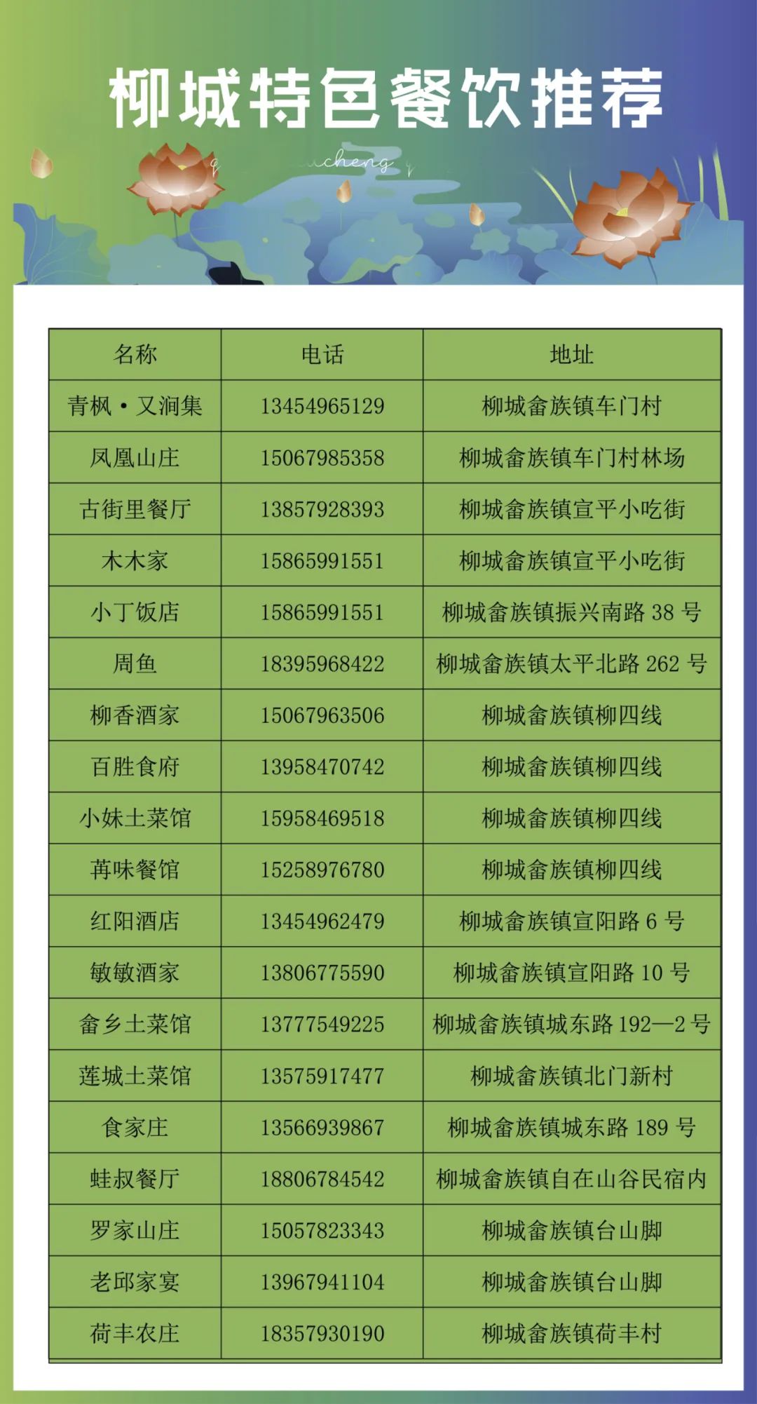 除此之外,2025柳城10KM绿道精英赛组委会还为跑友们整理了柳城本地特色美食清单,在品尝宣平小吃之后,还可以前往尝试畲乡特色美食,品味别样风味。